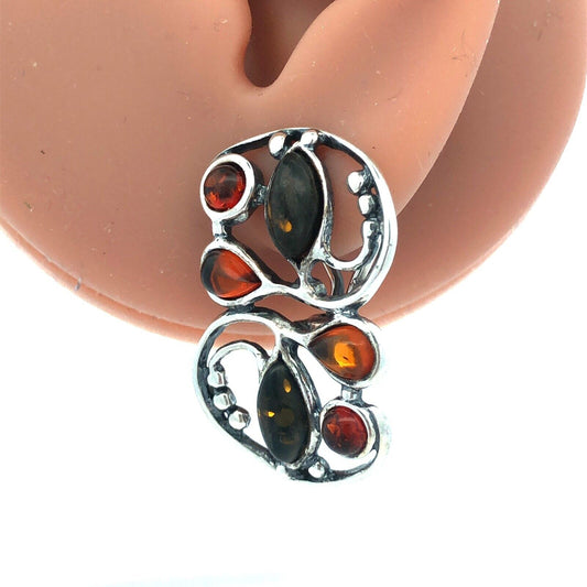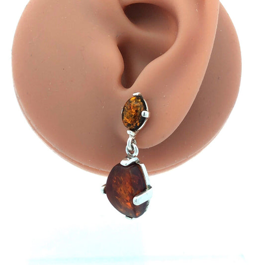 Vintage 925 Sterling Silver Oval Amber Dangle Stud Earrings
