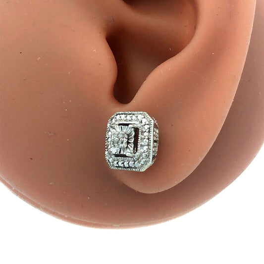 Designer 925 Sterling Silver Round Diamond Cluster Anniversary Stud Earrings