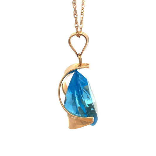 Designer 14K Yellow Gold Pear Blue Topaz Solitaire Statement Pendant Necklace
