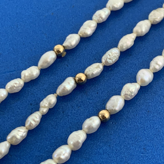 Estate 14K Yellow Gold Baroque Pearl Gold Bead Necklace