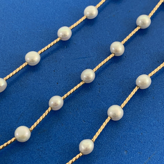 Designer 14K Yellow Gold 4.5 mm Cultured Freshwater Pearl Station Necklace