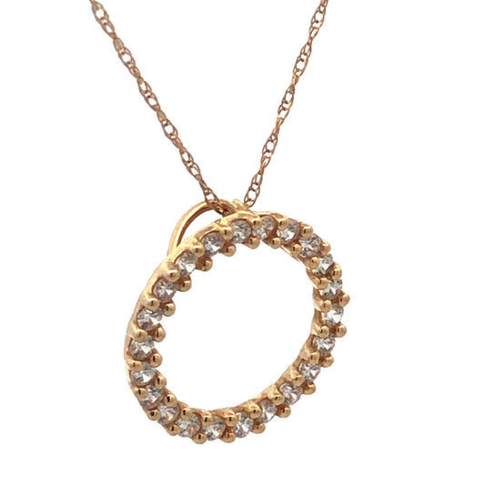 Designer 14K Yellow Gold Cubic Zirconia CZ Infinity Circle Pendant Necklace