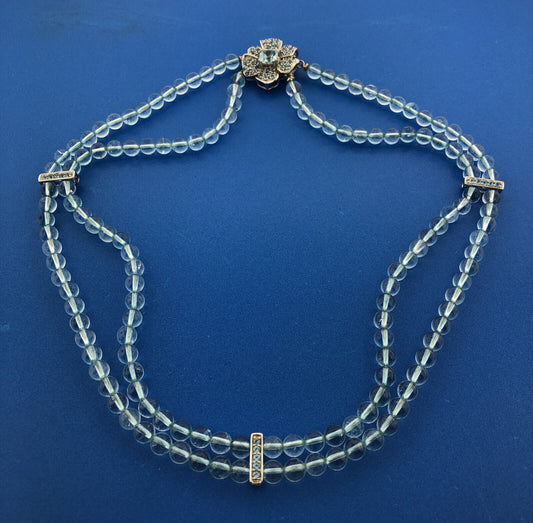 Gorgeous 14k White Gold Blue Topaz Poppy Flower Statement 18.5" Bead Necklace