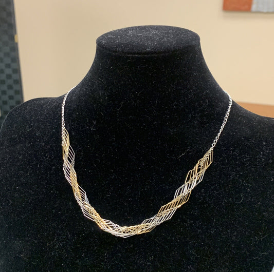 Designer 10K Yellow Gold 925 Sterling Silver Modernist Wire Abstract Necklace
