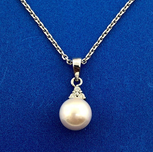 Designer 14K White Gold Pearl Diamond Wedding Anniversary Sweetheart Necklace