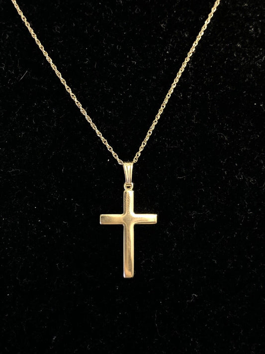 Designer M 14K Yellow Gold Polished Cross Pendant Chain Necklace