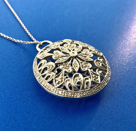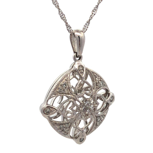 14K White Gold Diamond Filigree Cutout Bridal Pendant Anniversary Necklace