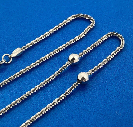 Italy 14K White Gold Twisted Rope Disco Ball Station Necklace