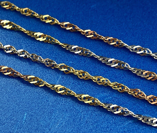 Retro 14K Yellow White Rose Gold Tri-Colored Diamond Cut Twisted Chain Necklace