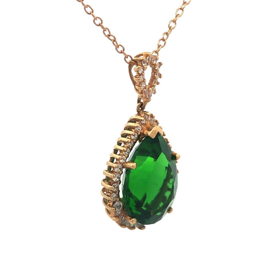 Designer Stauer 10K Yellow Gold Green Pear CZ Halo Statement Pendant Necklace