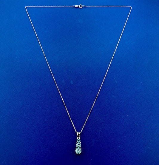Designer 10K White Gold Round Blue Topaz Journey Pendant Necklace
