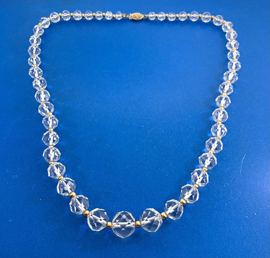 Designer 14K Yellow Gold White Amethyst Faceted Graduated Bead Necklace