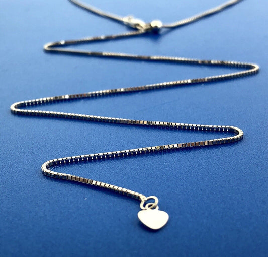 Designer RCI Turkey 14K White Gold Lariat Slide Style Box Chain Necklace