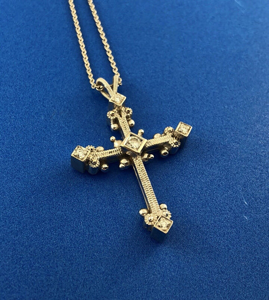 Eli Jewels 18K White Gold Diamond Aegean Collection Statement Cross Necklace