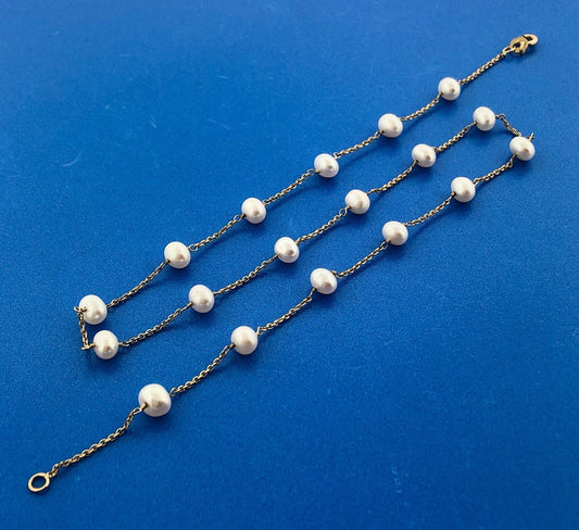 Designer RCI 14K Yellow Gold Cultured Pearl Station Necklace