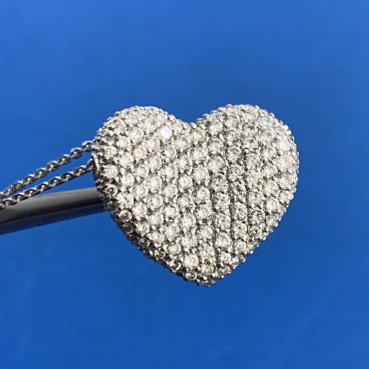 Designer GC2 14K White Gold Diamond Heart Anniversary Pendant Necklace