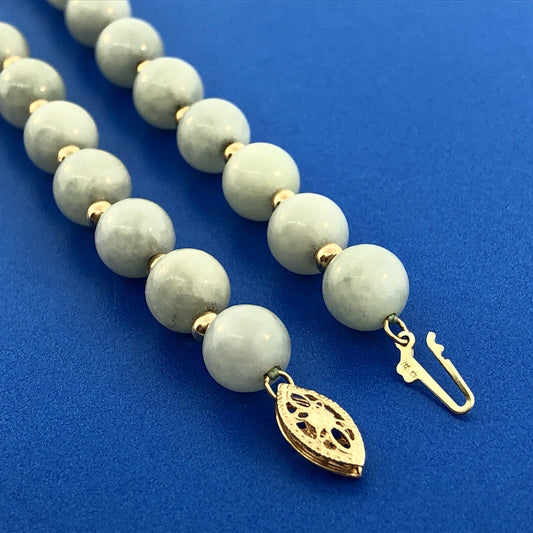 Designer 14K Yellow Gold Jade Jadeite Bead Ball Filigree Clasp Necklace