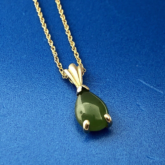 Vintage Designer BA Ballou 14K Yellow Gold Jade Jadeite Drop Pendant Necklace