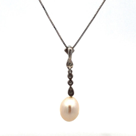 Designer AJ 14K White Gold Diamond Pearl Bridal Pendnat June Wedding Necklace