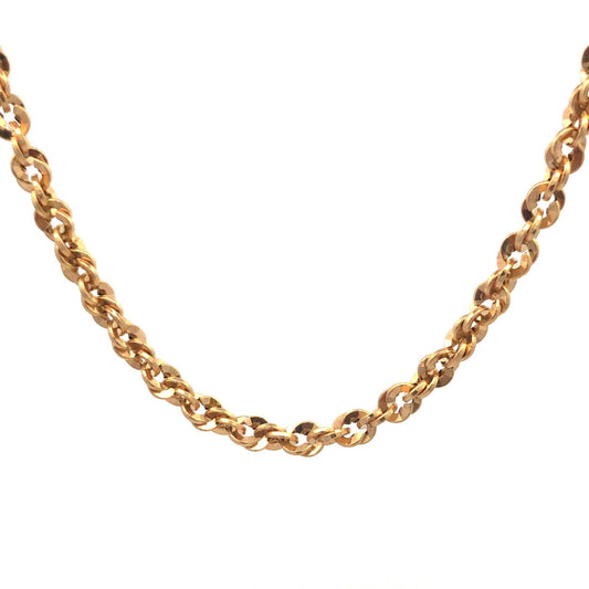 Designer Italy 14K Yellow Gold Diamond Cut Rope Link 22" Chain Necklace