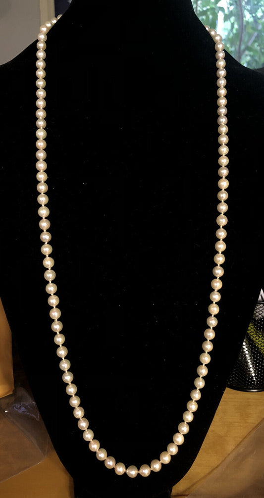 Vintage Retro 14K White Gold Pearl Wedding Bridal Sweetheart June Necklace 32"