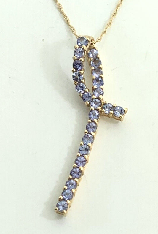 Designer 14K Yellow Gold Tanzanite Infinity Eternity Anniversary Necklace