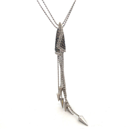 18K White Gold Champagne White Diamond Modernist Conical Pendant Necklace