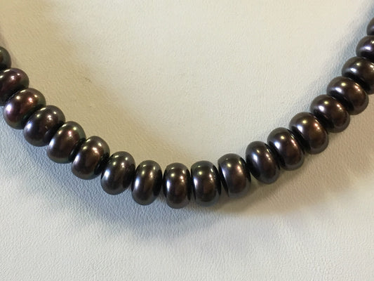 10k Yellow Gold Black Button Pearl Necklace 18"