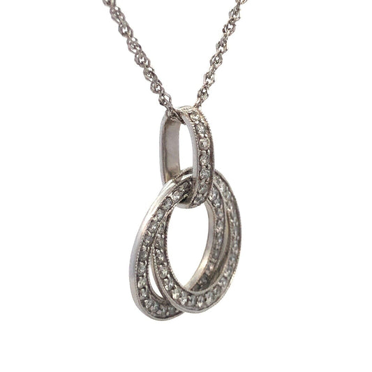 Beautiful 14k White Gold Double Diamond Eternity Anniversary Pendant Necklace