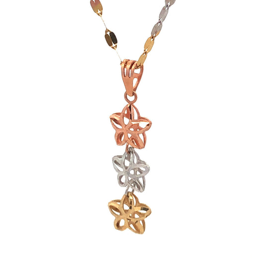 Retro Italy 14K White Yellow Rose Gold Three Star Diamond Cut Pendant Necklace