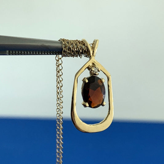 Designer 14K Yellow Gold Oval Garnet Diamond Accented Pendant Necklace
