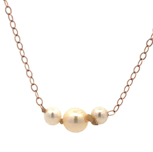 14K Yellow Gold Pearl Trio Wedding Anniversary June Bridal Petite Link Necklace