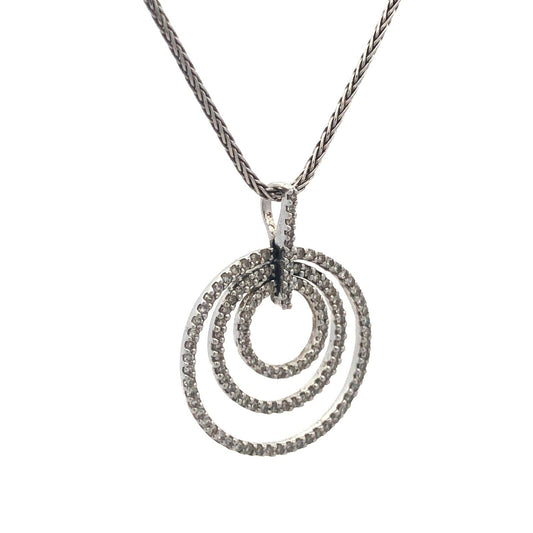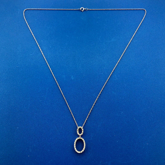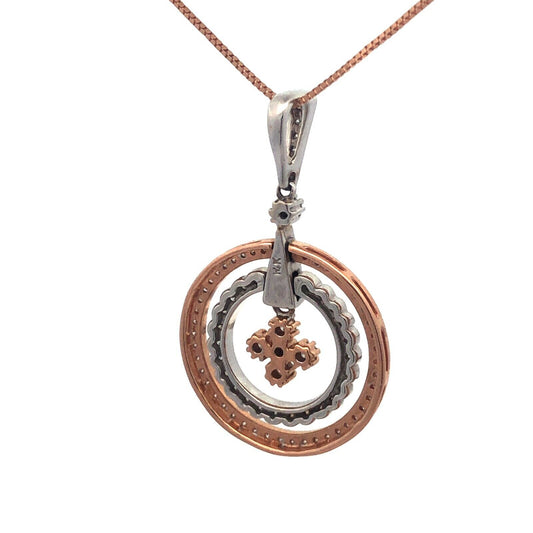 14K Rose White Gold Diamond Double Eternity Circle Pendant Necklace
