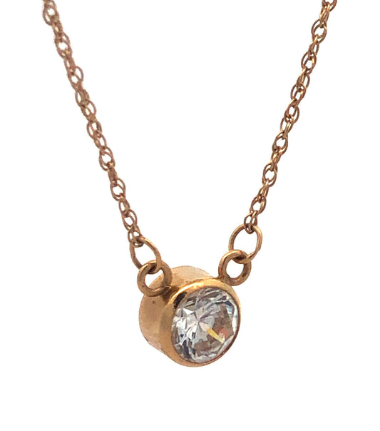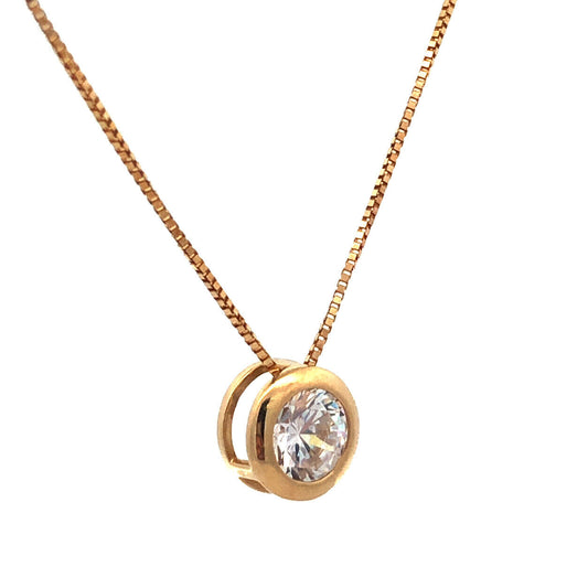 Designer 14K Yellow Gold Diamonique Solitaire Cubic Zirconia Pendant Necklace