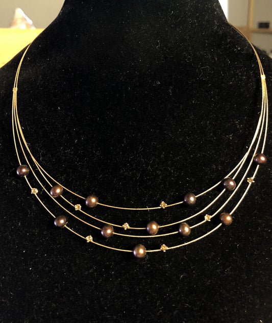 Adi Paz ZRW Israel 14K Yellow Gold Smoky Quartz Chocolate Pearl Cable Necklace