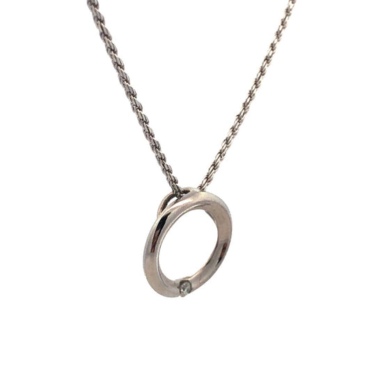 Designer Italy 10K White Gold Diamond Infinity Eternity Circle Pendant Necklace