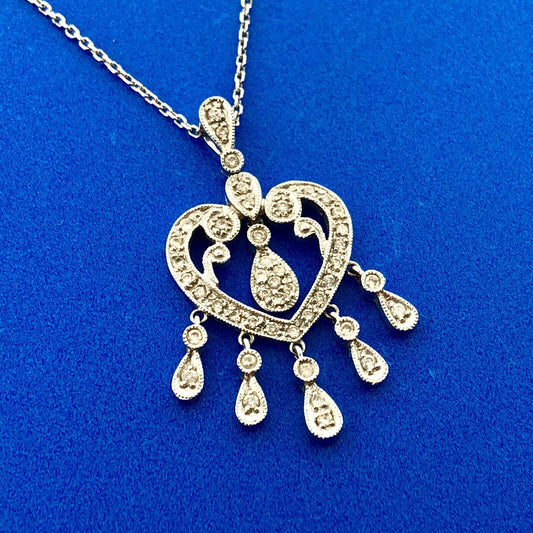 Gordon's 14k White Gold Diamond Heart Pendant Dangle Necklace JWBR
