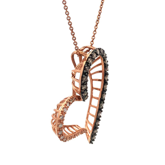 14K Rose Gold White Champagne Diamond Free Form Heart Anniversary Necklace