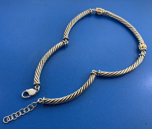 925 Sterling Silver 14K Yellow Gold Citrine Cable Station Collar Necklace