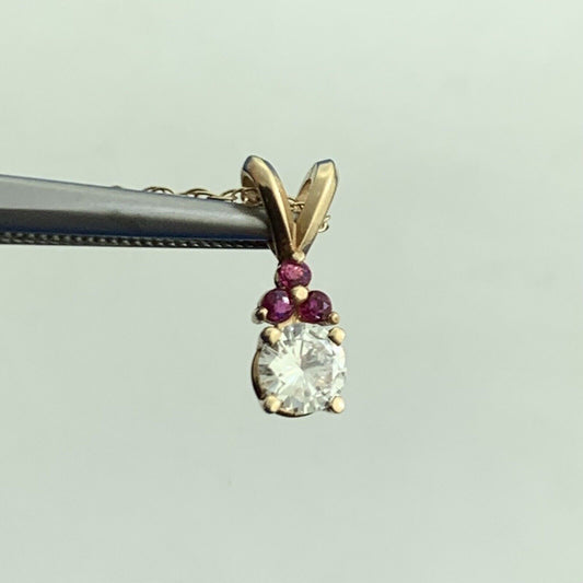 Vintage 14K Yellow Gold Diamond Ruby Accented Pendant Necklace