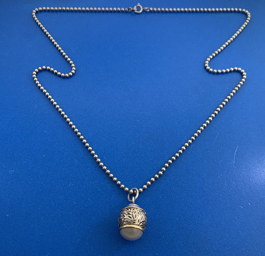 Designer 925 Sterling Silver 14K Gold Pearl Leaf Motif Pendant Necklace