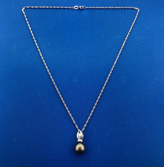14k White Gold Tahitian Pearl Pendant Necklace with Diamond Accent