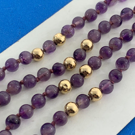 Designer 14K Yellow Gold Amethyst Bead Healing Spiritual Awareness Necklace