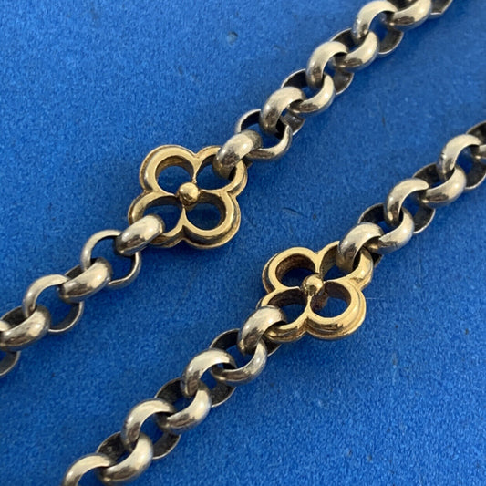 Konstantino 925 Sterling Silver 18K Gold Quatrefoil Circle Link Toggle Necklace