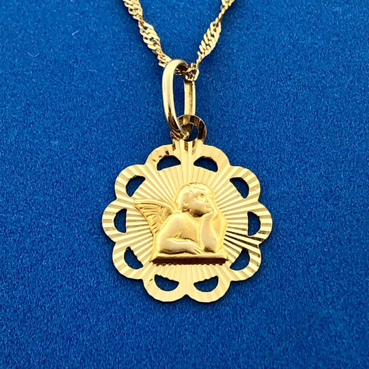 Designer Milor Italy 14K Yellow Gold Guardian Angel Sunburst Disc Necklace