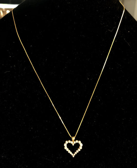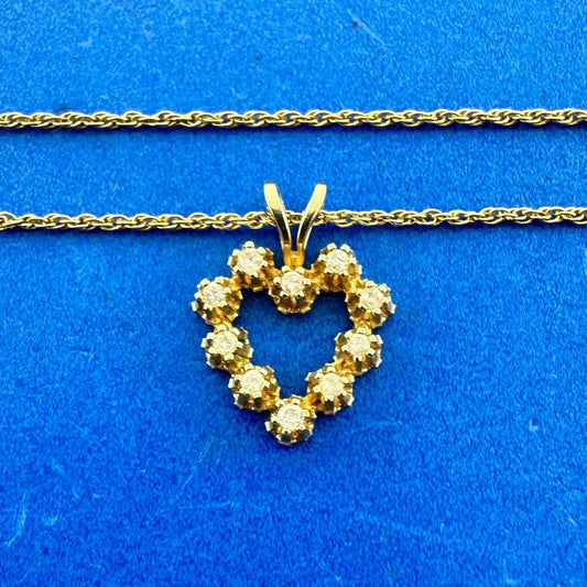 Vintage 14K Yellow Gold Diamond Heart Love Pendant Chain Necklace