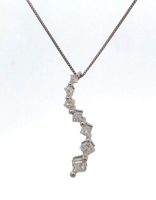 Modernist Designer 14K White Gold Princess Diamond Infinity Pendant Necklace