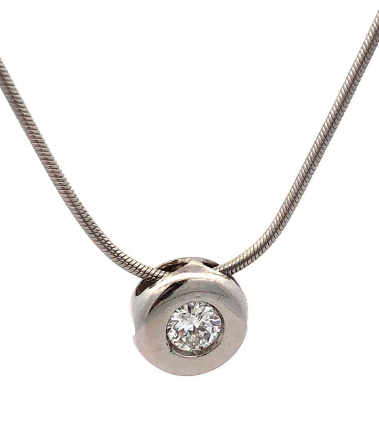 Designer 14K White Gold Modernist Round Diamond Pendant Snake Chain Necklace