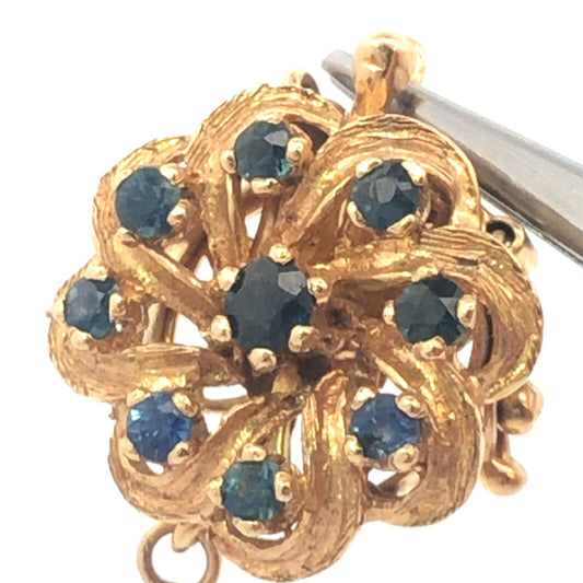 Estate 14K Yellow Gold Round Sapphire Flower Design Pearl Necklace Clasp