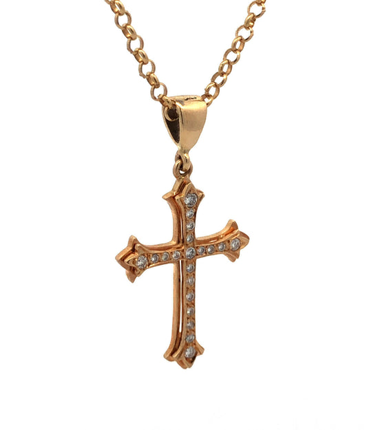 Designer KGJ 14K Yellow Gold Round Diamond Cross Pendant Chain Necklace